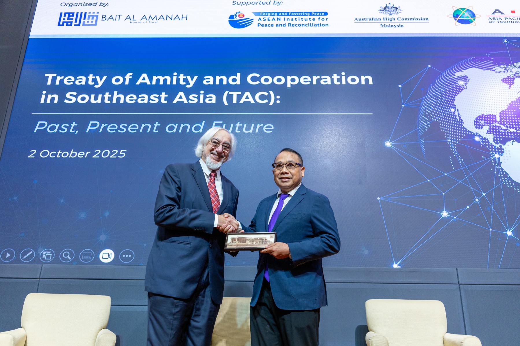 Next year marks the 50th anniversary of the Treaty of Amity and Cooperation in Southeast Asia (TAC), as a landmark document that laid the foundation for peace, trust, and stability in the region since its signing in 1976. In line with the upcoming anniversary, the ASEAN Institute for Peace and Reconciliation (ASEAN-IPR), under the initiative of the ASEAN-IPR Advisory Board (AB) Chair – Malaysia, convened a Seminar on the Treaty of Amity and Cooperation in Southeast Asia (TAC): Past, Present and Future on 2 October 2025 at the Asia Pacific University of Technology & Innovation (APU), Kuala Lumpur, Malaysia. The Seminar was organised by Bait Al Amanah, in partnership with ASEAN-IPR and APU, supported by the Australian High Commission in Kuala Lumpur.