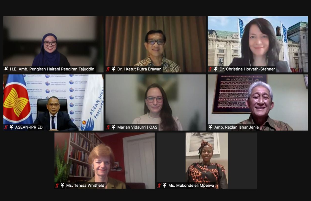 In conjunction with the ASEAN-IPR’s 9th anniversary, the Institute convened the 6th Session of the Discussion Series 2021 on 18 November. With the theme “peace processes beyond the region,” the session aptly brought figures from the UN as well as regional organisations, such as the OSCE, OAS, and the African Union, further deepening the Institute’s engagement with like-minded institutions.